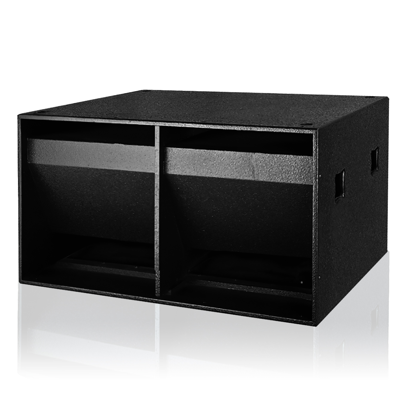 采用2只18英寸(465mm)專業(yè)超低音單元; 2. 采用高成本鋁材鑄造,具備剛性高、無諧振、重量輕、散熱快的優(yōu)點; 3. 錐盆采用高強度復(fù)合紙振膜,三道布折環(huán)涂付阻尼材料,并增加波形加強筋,減少分割震動造成的失真,具有平直的頻率曲線; 4. 低頻單元采用直徑100mm音圈精選Kapton材料骨架及矩形截面無氧銅導(dǎo)線注入液磁冷卻,具備:磁隙小、效率高、,重量輕、耐高溫、散熱快特點; 5. 耐高溫NOMEX纖維精制定心支片,滿足高聲壓級輸出時單元高動態(tài)低失真度; 6. 樺木夾板箱體采用迷宮式導(dǎo)向設(shè)計; 7. 外飾黑色晶點漆,硬度高,不易磨損; 8. 箱體設(shè)置全頻箱支撐孔; 9. 線路連接采用NL4插頭; |